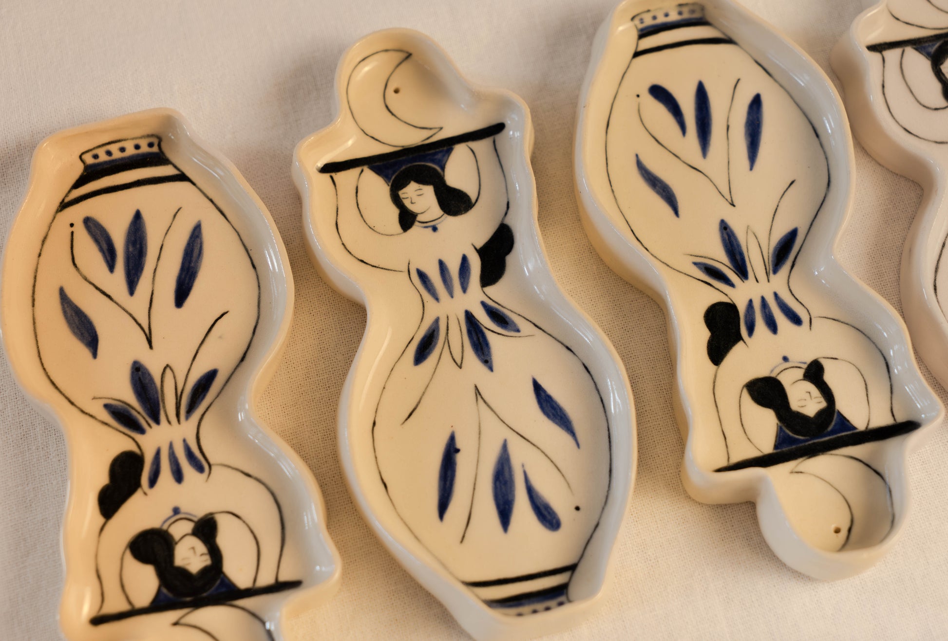 Hand-built and hand-painted in stoneware, this incense holder is shaped as a serene woman carrying the moon. With her flowing silhouette and quiet presence, she brings softness and stillness to your space. A small reminder to slow down, breathe, and return to yourself.